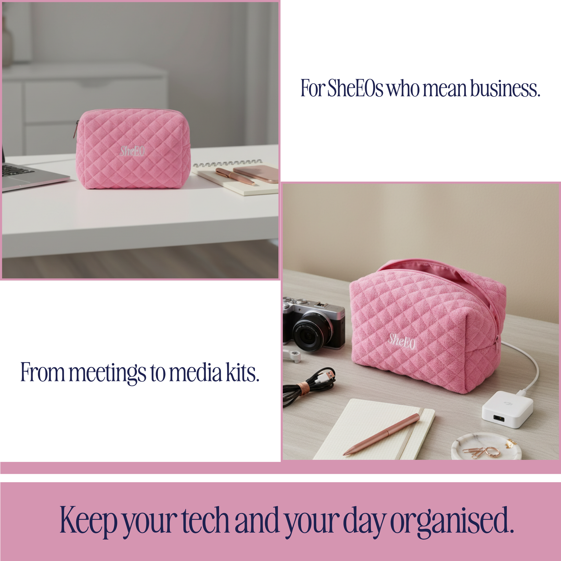 Not your average makeup bag. The SheEO Power Pouch was made for the woman whoβs got more to carry and bigger things to do.